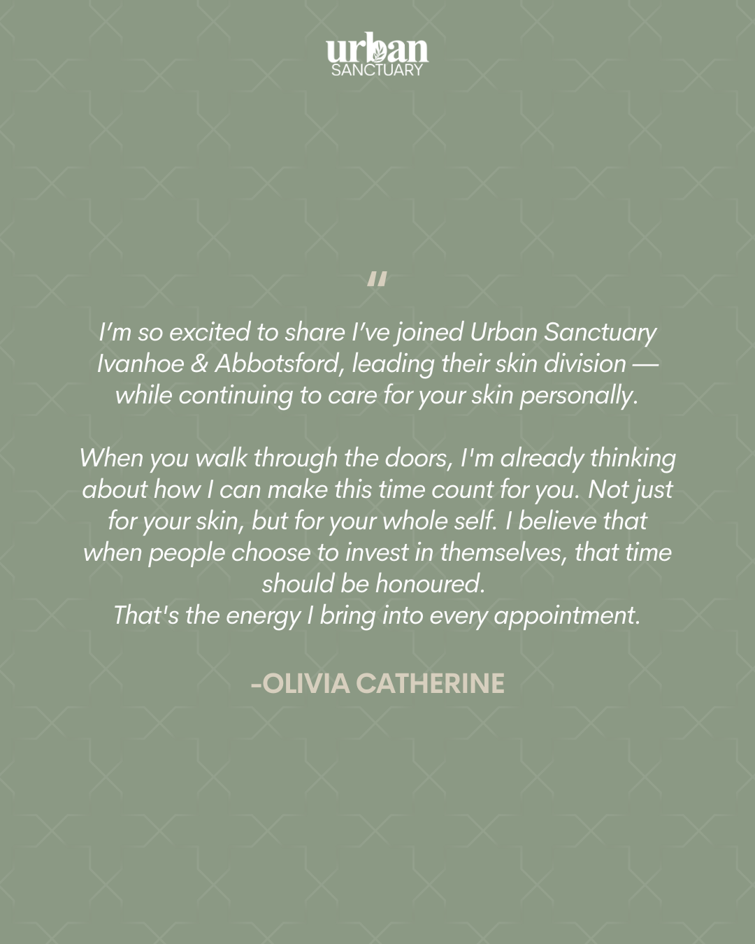 Rest assured, everything you love about both Urban Sanctuary and Olivia Catherine remains. You’ll still experience the same welcoming atmosphere, the same dedicated practitioners, and the same commitment to excellence that brought you to us in the first place.